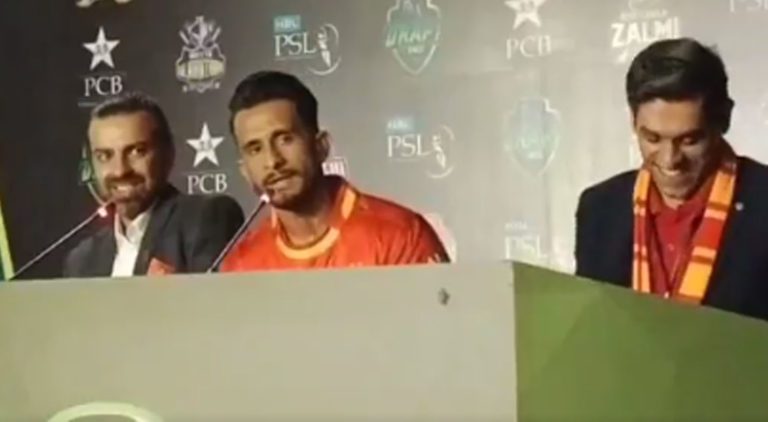 Pakistani fast bowler Hasan Ali lost his cool during a press conference after the Pakistan Super League (PSL) 7 players'...