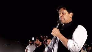Pakistan Tehreek-e-Insaf (PTI) Chairman and former prime minister Imran Khan is addressing a public gathering in Dir Bal...