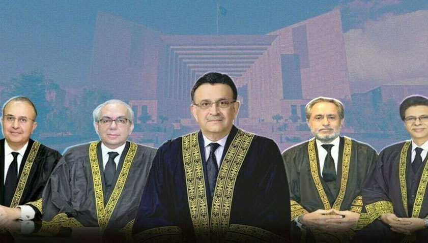 The newly-formed four-member bench of the Supreme Court of Pakistan, hearing the PTI petition regarding delay in electio...